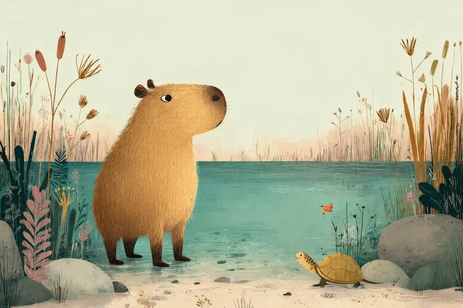 Ця казка розповідає про капібару, яка одного ранку помітила, що її улюблене озеро стало мілким. Разом із друзями вона вирушає шукати, куди поділася вода, і вчиться знаходити рішення без сварок…