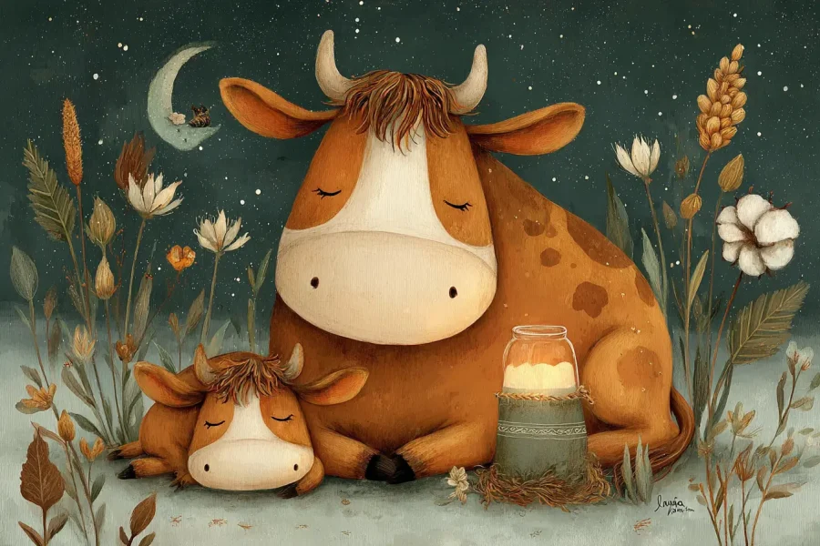 Тепла казка на ніч розповідає про добру корову Мілку, яка одного вечора помічає, що її молоко світиться, мов маленька зірочка. Зоряне молоко допомагає тим, хто не може заснути, знайти спокій…