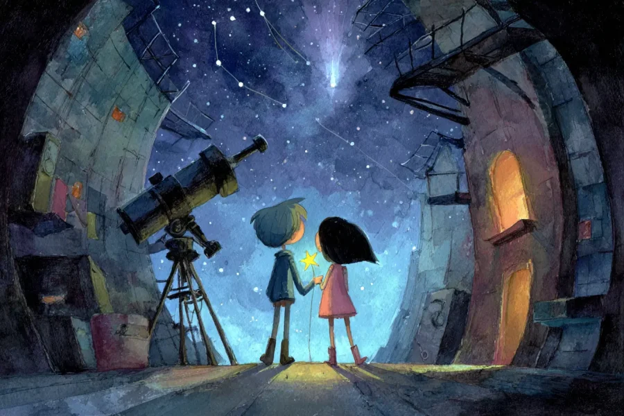 Чаріна казка на ніч розповідає про маленьку зірочку 🌟, яка впала на землю й не пам’ятала, з якого вона сузір’я. Дівчинка й хлопчик допомагають їй знайти назву її дому за…