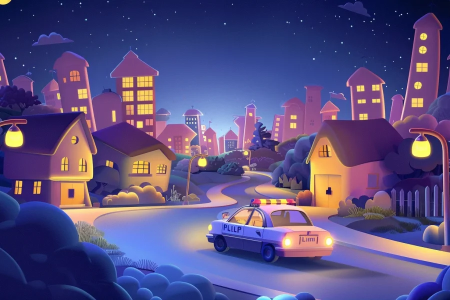 Наша нічна казка розповідає про поліцейську машину Люмі, яка повільно їде містом, коли всі вже сплять. Вона перевіряє дитячий садочок, школу, парк і тихі вулиці, стежачи, щоб навколо було безпечно…