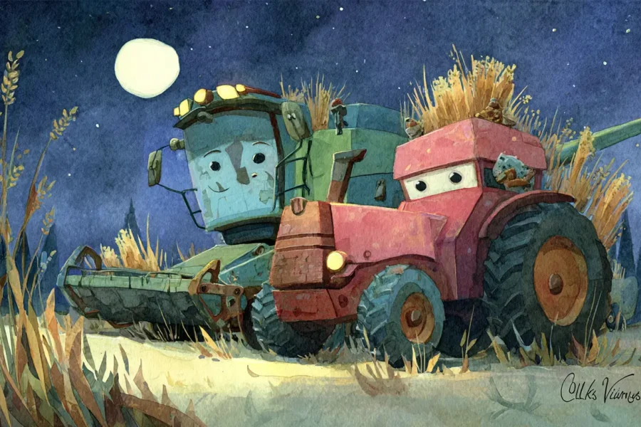 Казка на ніч розповідає про Трактора і Комбайн, які виходять у поле тоді, коли весь світ засинає. Під місячним світлом вони працюють повільно й обережно, не порушуючи спокій ночі, дбаючи…