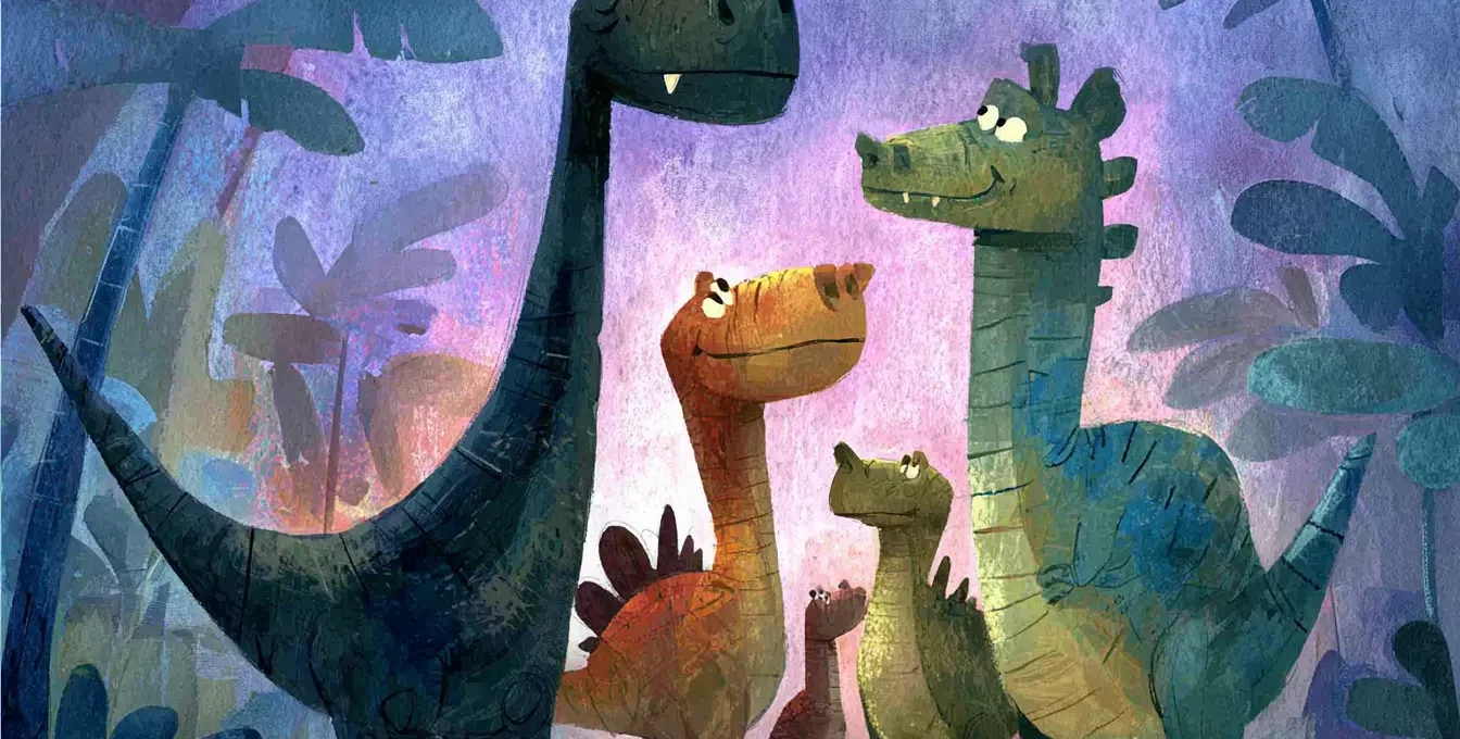 Дорослі динозаври ще не встигли прийти, а друзі метушилися навколо.