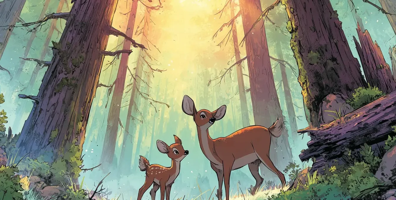 Оленятко не побігло. Воно пішло назустріч звуку, обережно ступаючи між корінням і м’якою травою. Кожен крок був упевненішим за попередній. Коли мама з’явилася поруч, оленятко притислося до неї боком і довго не відпускало, слухаючи її дихання.